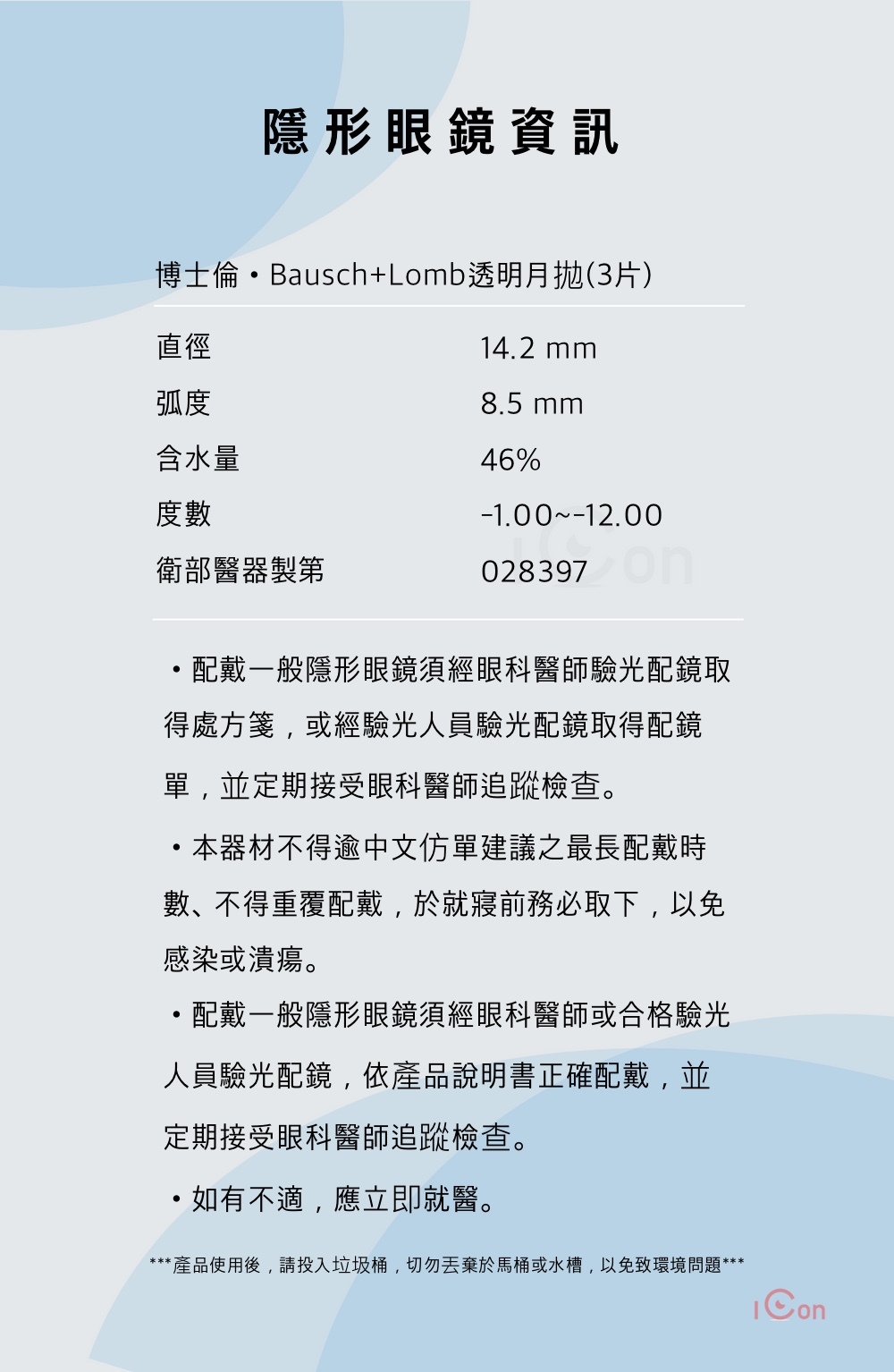 博士倫輕水氧矽水膠透明月拋(3片)