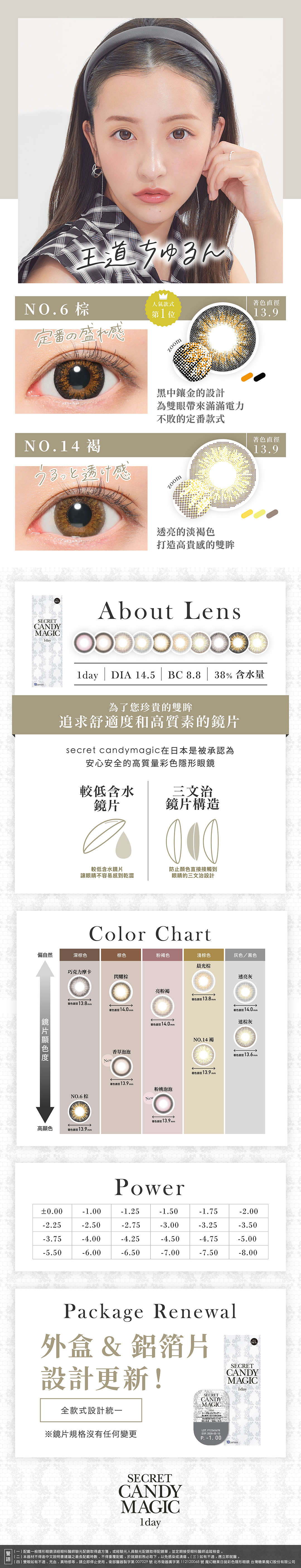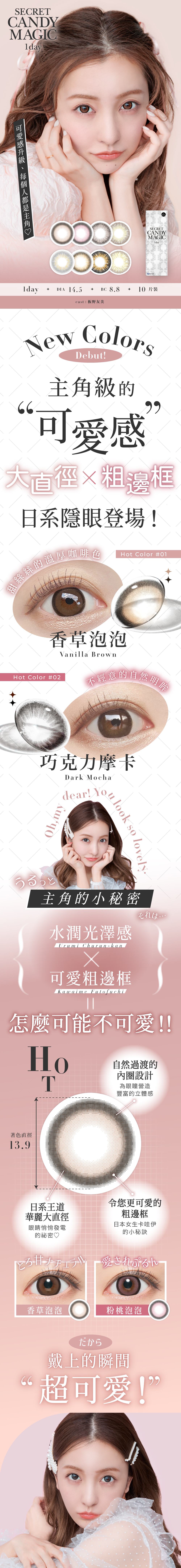candymagic品牌日本超人氣彩色隱形眼鏡在台灣也有販售囉,大直徑14.5mm系列深受女孩喜愛。人氣款式褐色NO.14透亮的淡褐色,柔和的鏡片設計,盡顯優雅氣質,打造高貴感覺!