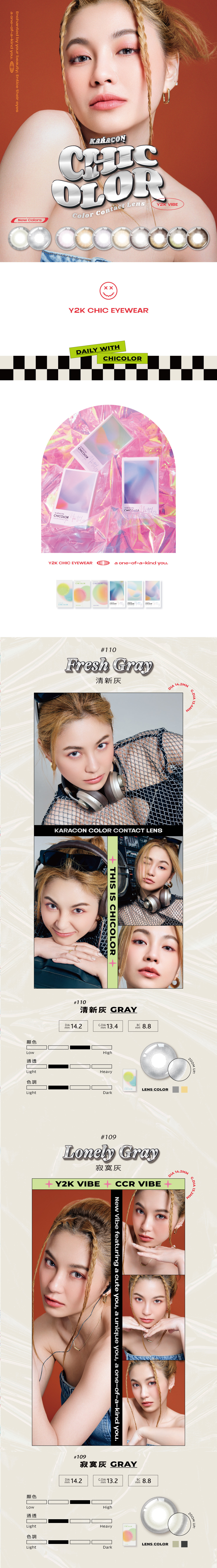 一整天的Look就從CHIC開始吧!日、韓、台設計團隊!共同打造的亞洲品牌隱形眼鏡,鏡片採用台灣優良技術製造,提供給配戴者更加舒適、亮眼、安全的隱形眼鏡!完美直徑,為亞洲人量身打造。顏色是蠻正的灰跟其他款比偏暖一點,著色最內層色塊有加深做層次,是熱門的黑圈款,上眼蠻有神的,日常好搭不出錯的款式~