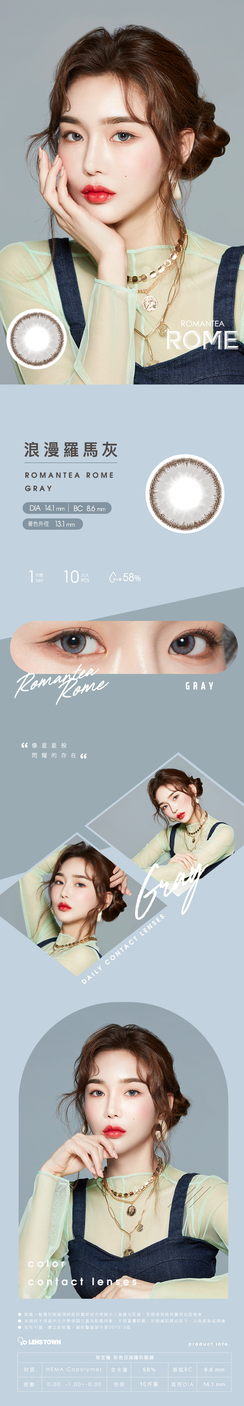 韓國超人氣隱形眼鏡品牌lenstown,韓國官方授權,台灣獨家代理!由韓國金請夏推薦,我的城市風格Romantea Rome ,熱銷魅力小直徑日拋!浪漫羅馬灰Romantea Rome,柔和的棕色外圈,融合內圈的質感色系,自然呈現深邃的琉璃光澤,如羅馬城市般的自由及浪漫!