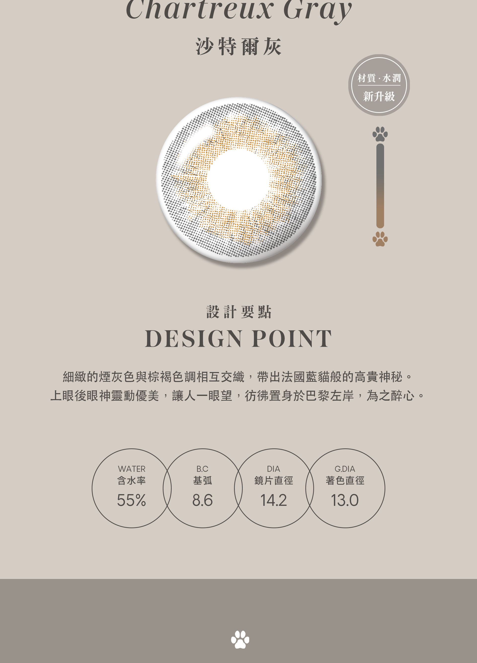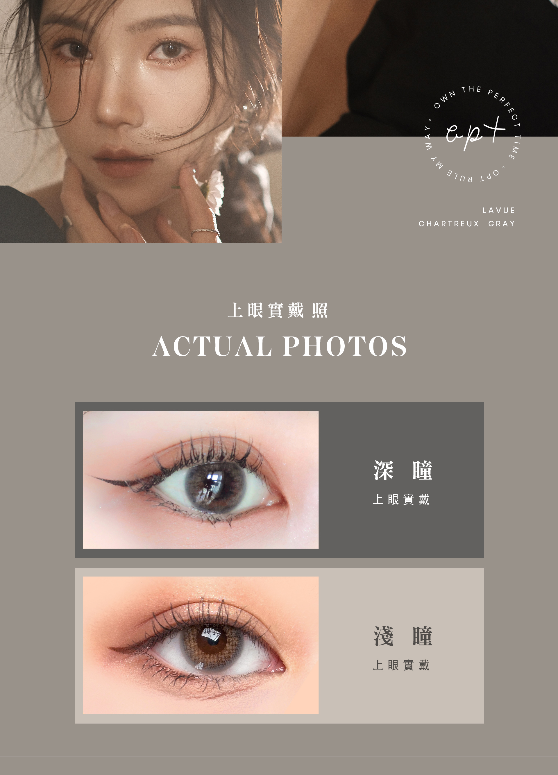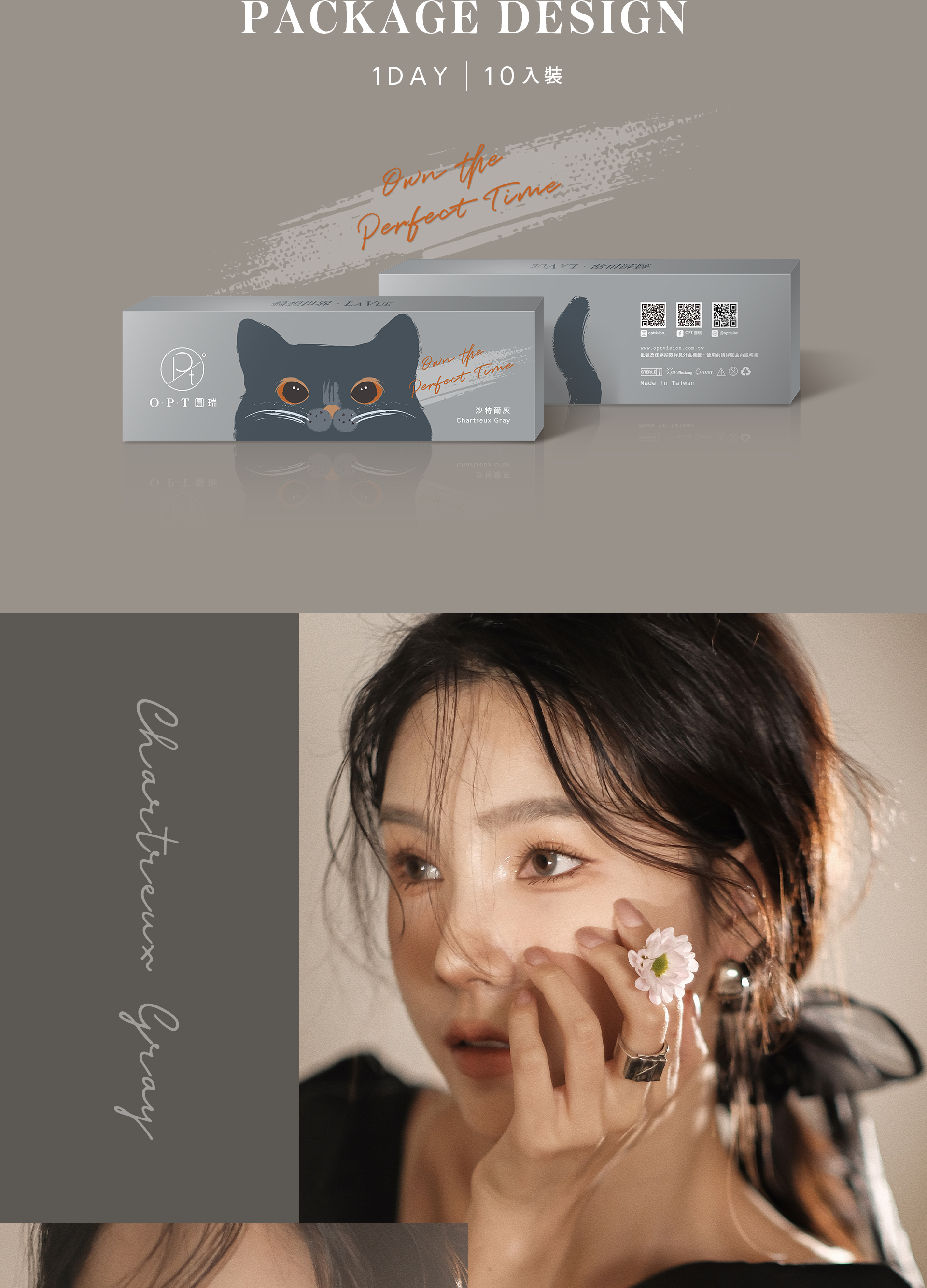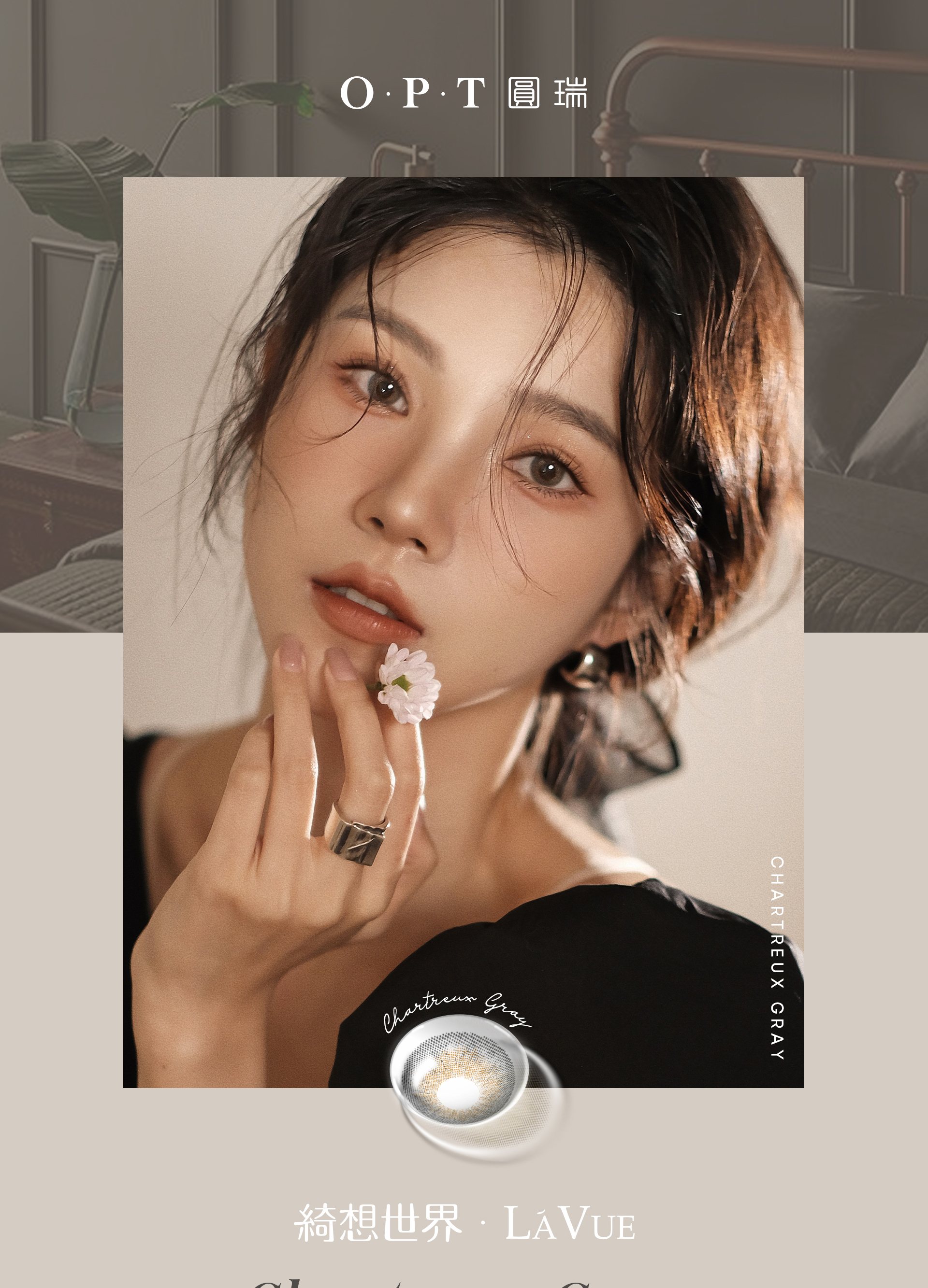 OPT彩色美瞳台灣製造 口碑好品牌 -材質升級保濕潤滑,水潤升級改善舒適度,抗UV阻擋紫外線,優雅神秘推薦沙特爾灰隱形眼鏡
